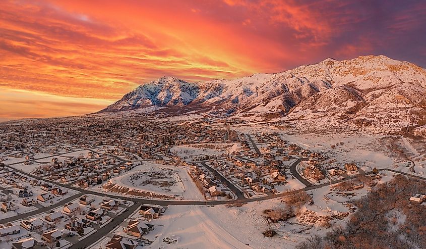 ユタ州ノース・オグデン地区の上空をドローンで空撮。
