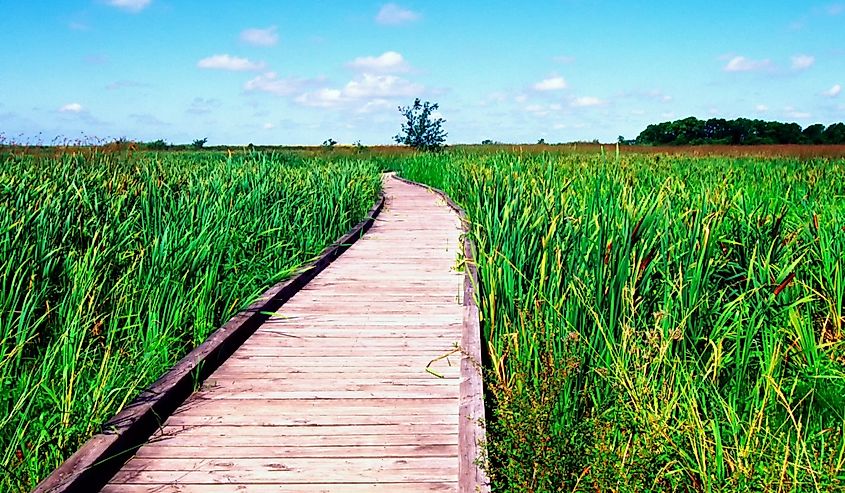キャメロン教区、クレオール自然歩道、ルイジアナ州、米国、湿地遊歩道