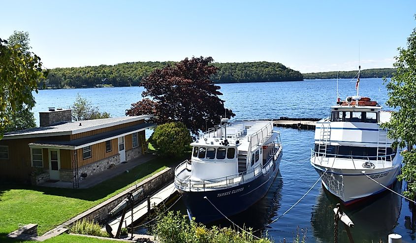 このドア郡の飛び地は比類のない自然の景観を誇り、2025 年にウィスコンシン州で訪れるのに最適な町の 1 つです。ここにはペニンシュラ州立公園があり、毎年 100 万人近くの冒険家が訪れ、3,700 エーカーの手つかずの自然でのハイキングやキャンプからゴルフやボート遊びまで、一年を通じてレクリエーション活動を楽しんでいます。フィッシュ クリーク シーニック ボート ツアーのおかげで、ゲストは思い出に残る観光旅行のために水上に乗り、歴史的な灯台、歴史的な住宅、ドラマチックな断崖を目撃するチャンスを得ることができます。