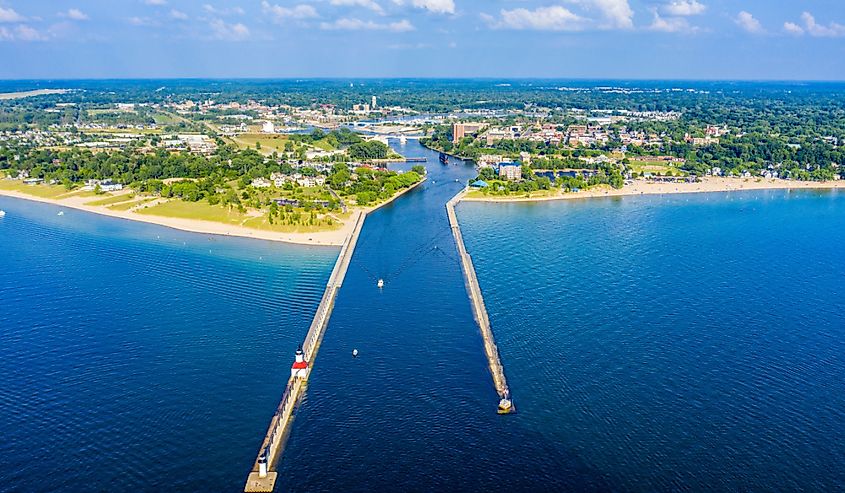 この隠れた宝石は、リトル トラバース湾の南岸にある、手付かずの自然なドレスを着たビクトリア朝の心をおとぎ話に似ています。隣接する州立公園から、すぐそばの素晴らしい湖の景色まで、湖畔沿いにあるキルウィンズ アイス クリームをお見逃しなく。エレガントでクリエイティブな要素を兼ね備えた、かつての工業用地を改装したベイフロント パークには、スポーツ フィールドと遊び場があります。ガス灯地区には、古い建物や趣のある商店が立ち並んでいます。北に少し歩くと、その名を冠した州立公園があり、1 マイルにわたるベイサイド ビーチの近くでキャンプをしたり、森の中を通る全レベルのハイキング コースを楽しめます。海岸沿いにある非常に貴重なサンゴの化石である、とらえどころのないペトスキー ストーンについては多くの人が知っています。