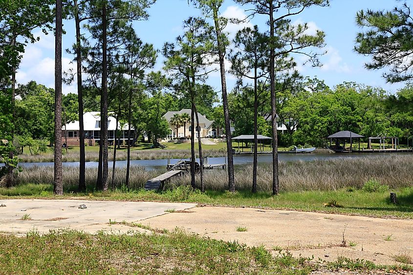 ミシシッピ州パスクリスチャンの運河沿いの家々。