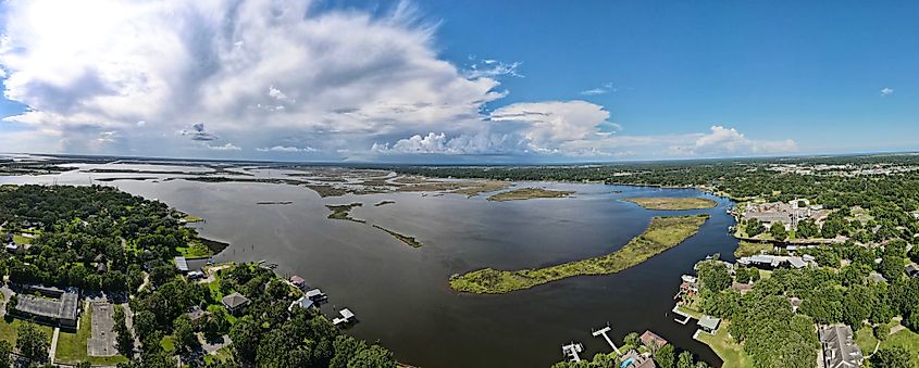 ミシシッピ州パスカグーラのクレブス湖を見下ろすパノラマ。