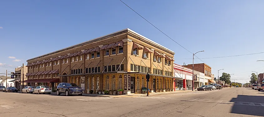 オクラホマ州ル・フロール郡の町、タリヒナのダウンタウンの通り。編集クレジット: RaksyBH / Shutterstock.com