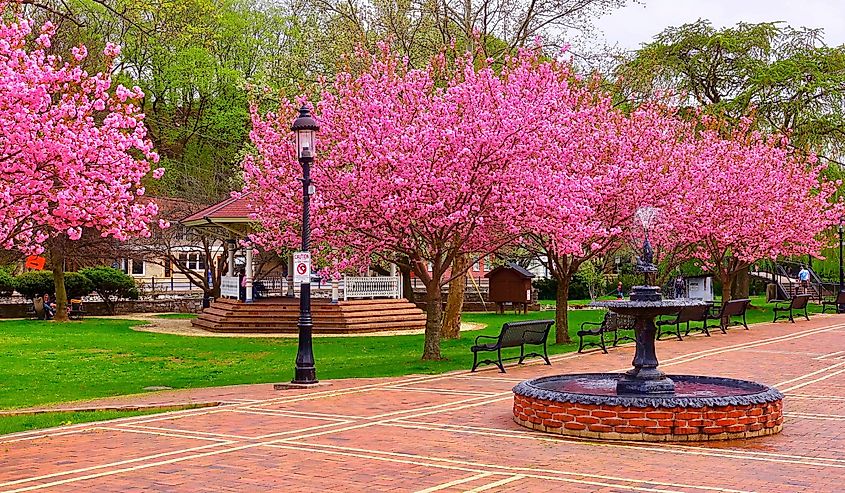 ペンシルベニア州ベルフォンテの満開の公園の木。