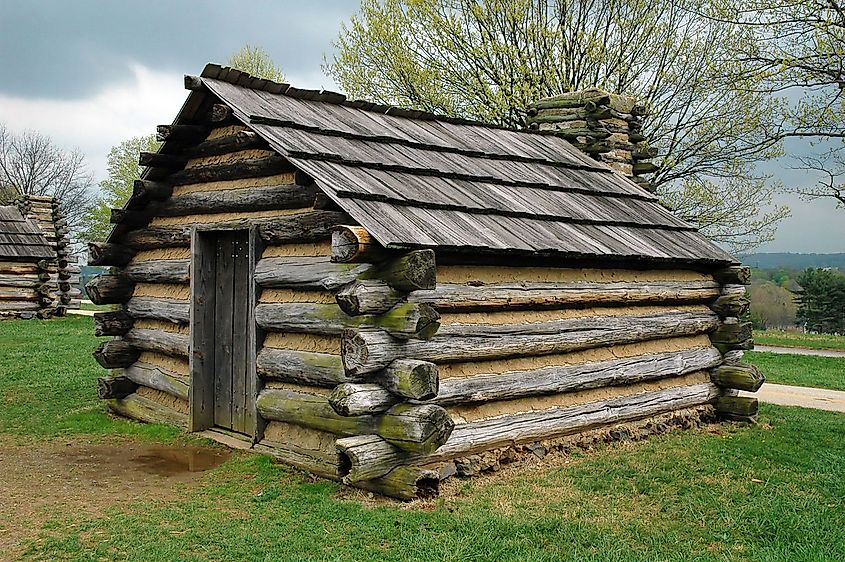 ペンシルベニア州バレーフォージの小屋のレプリカ。画像クレジット Rdsmith4、CC BY-SA 2.5、 経由ウィキメディア・コモンズ