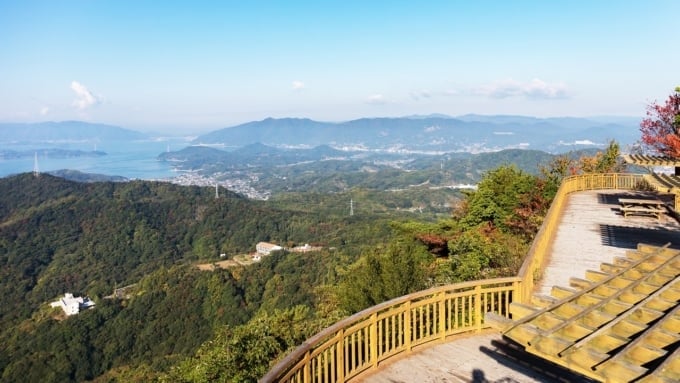 その風光明媚さから国立公園に指定されています。 360度さえぎるもののない瀬戸内海の景色は夕日が最高です。展望台にはベンチがあり、夕暮れ時にはカップルが訪れる姿も見られます。展望台から見える島を紹介したガイドマップもあります。ここでは瀬戸内海の島々の記念写真を撮る人もよく見かけます。