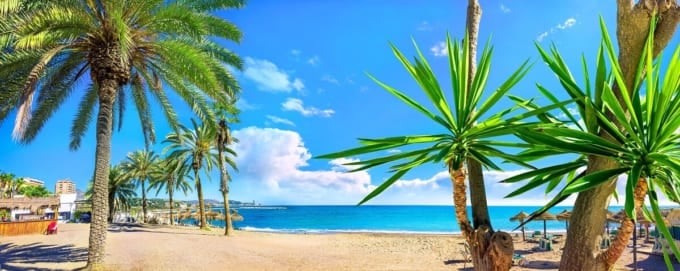 マラゲータ ビーチはマラガの典型的なビーチであり、コスタ デル ソルの中心です。アルメリアのタリファからガタ岬まで地中海沿いに広がるこのビーチは、その名の通り太陽が明るく輝き、冬でも暖かい気候です。古くから美しい海岸線が整備され、現在では国際的な観光地として知られています。特に日照時間の少ない北欧からの旅行者に人気です。