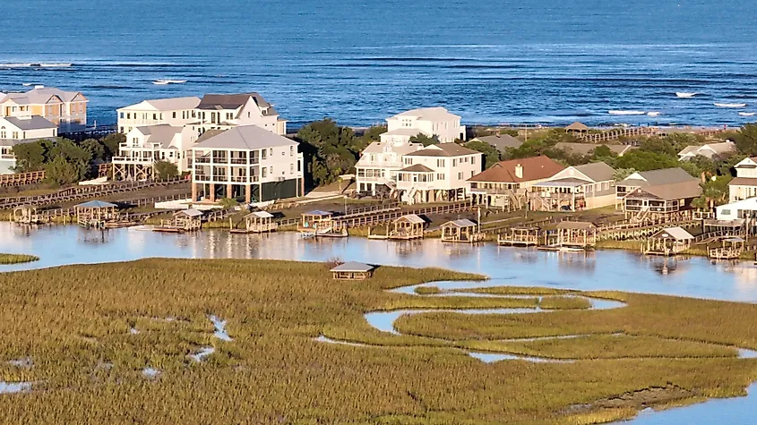 サウスカロライナ州ポーリーズ島の高床式海岸沿いの別荘。