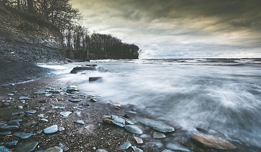バッファローの南西、エリー湖畔にあるアンゴラ オン ザ レイクは、村というよりは夏の隠れ家といった雰囲気です。そのハイライトは近くのエバンゴラ州立公園で、広い砂浜が水面に沿って曲がり、劇的な頁岩の崖が海岸線を縁取っています。暖かい季節には、水泳、キャンプ、野生生物が豊富な広々とした牧草地や森林地帯を曲がりくねったハイキング コースを楽しむ家族連れがここに集まります。