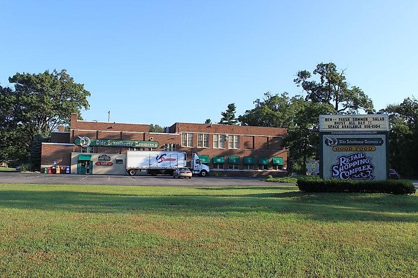 ミシガン州ランバートビルのモンロー通りとセコール通りの角にあるオールドスクールハウスコモンズの建物。