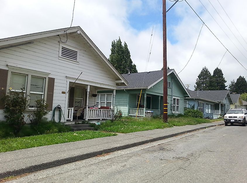 カリフォルニア州スコシア州の住宅。スコシア州は企業都市であり、住宅は規格化されていました。 Ellin Beltz 著 – 自身の作品、CC BY-SA 4.0、ウィキメディア・コモンズ