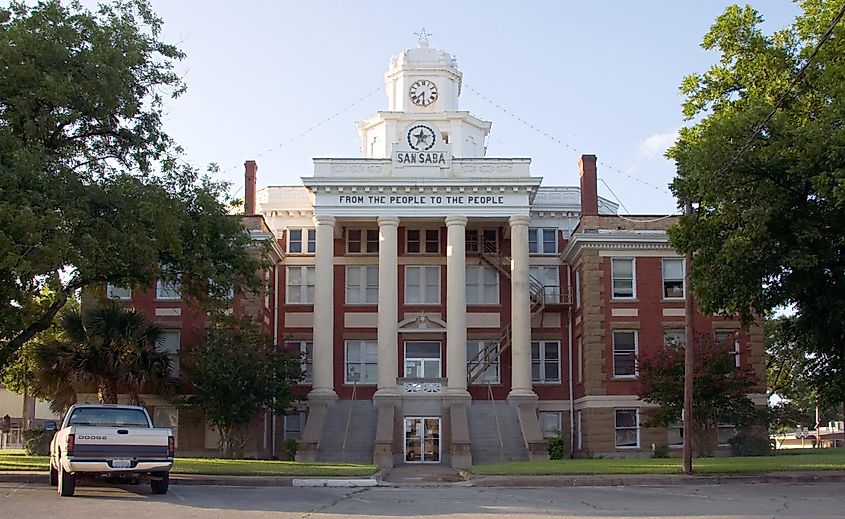 テキサス州サンサバ: 午後遅くの日差しに照らされたサンサバ郡裁判所、xradiophotog / Shutterstock.com経由