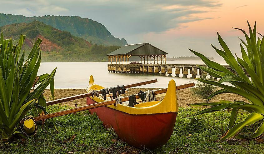 ハナレイ桟橋のハワイアンカヌー。 (AdobeStock経由の画像クレジットSteheap。)