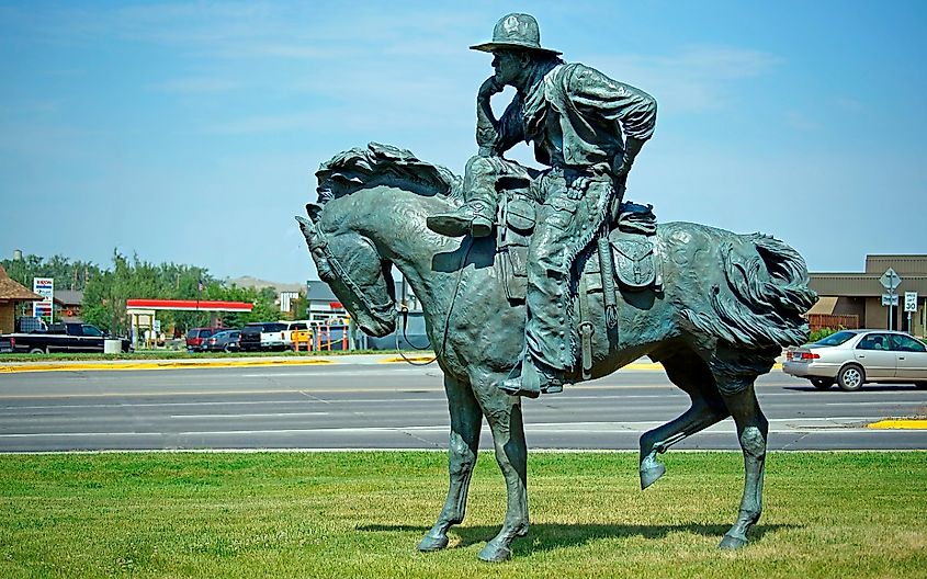 ワイオミング州ランダーにある馬の上で休むカウボーイの像。画像クレジット:Fsendek(Shutterstock経由)
