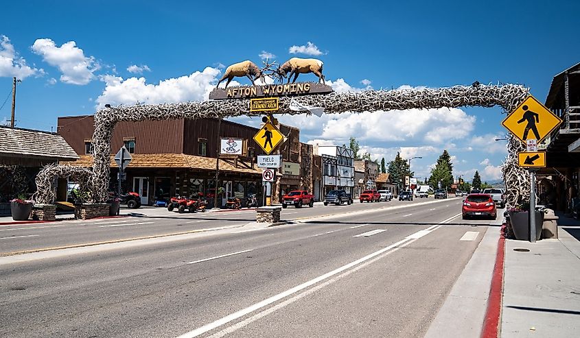 ワイオミング州アフトンのダウンタウンにある有名なヘラジカの角のアーチ。画像提供:melissamn、Shutterstock経由