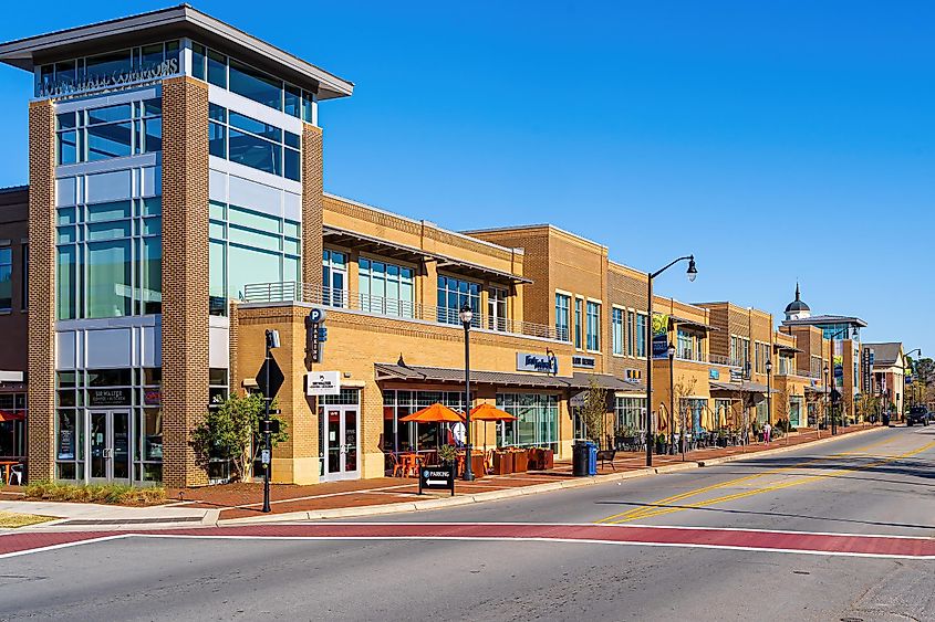ノースカロライナ州ホリースプリングスのダウンタウン。編集クレジット: Wileydoc / Shutterstock.com