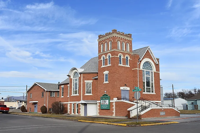 アイダホ州エメットにあるファースト バプテスト教会 (1909 年) は、国家歴史登録財に登録されています。画像クレジット: Tamanoeconomico、CC BY-SA 4.0、ウィキメディア コモンズ経由