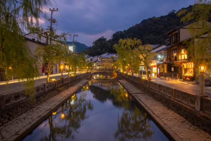 日本には温泉で有名な小さな町がたくさんあります。これらのリゾート地は驚くほど絵のように美しいことが多く、スタジオ ジブリの千と千尋の神隠しのシーンにインスピレーションを与えた場所がいくつかあります。兵庫県の城崎温泉もそのひとつで、訪れる人を江戸時代にタイムスリップさせてくれます。カジュアルな浴衣を着たゲストが川沿いを散歩し、伝統的な日本建築、石橋、しだれ木々を眺めます。温泉の合間には、静かで時代を超越した雰囲気に浸りながらリラックスできます。