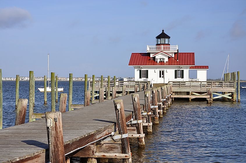 ノースカロライナ州イーデントンにあるロアノーク川灯台。