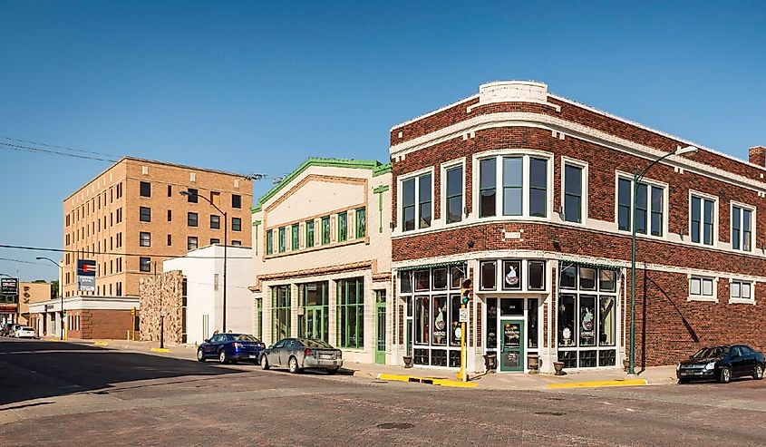 カンザス州ヘイズのメインストリートにあるダウンタウンの交差点。画像クレジット Nagel Photography (Shutterstock 経由)