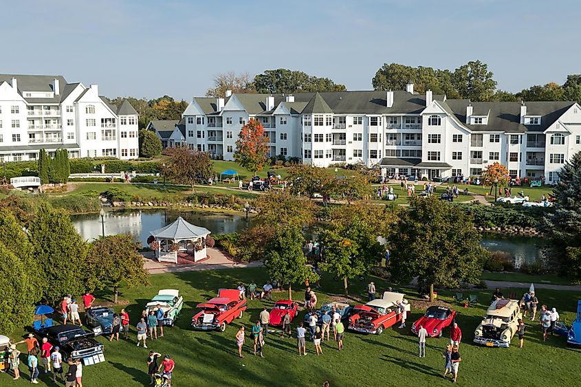 ウィスコンシン州エルクハート・レイクのオストホフ・リゾート敷地内で開催されるヴィンテージカー・ショー「ギャザ・オン・ザ・グリーン」の概要。