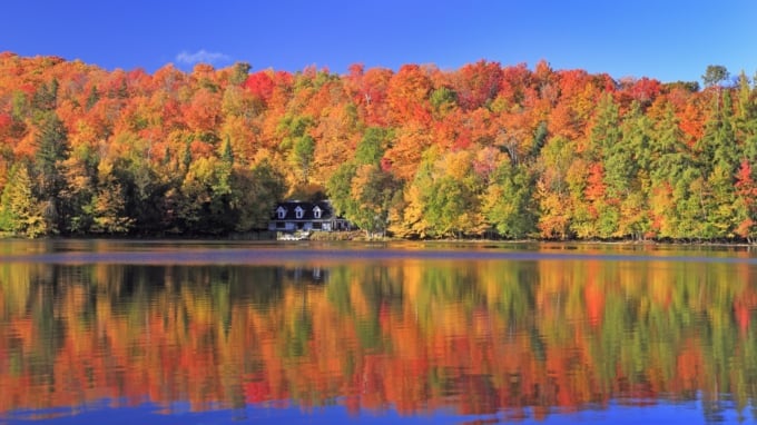 アルゴンキン州立公園は、ローレンシアン山脈と並んでカナダで最も美しい自然景観の 1 つとして知られています。東京都の約3.5倍の面積に広がる森全体が紅葉に染まる光景は、まさに圧巻です。