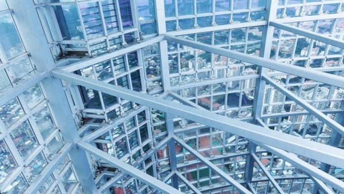 2 つのタワーを結ぶスカイブリッジは 41 階と 42 階にあります。両面がガラス張りになっており、街並みを一望しながら空中に浮いているような感覚を味わうことができます。