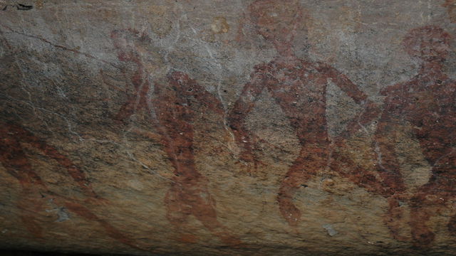 また、岩肌の一部には赤い顔料を使った先史時代の岩絵が見られ、釣りや狩猟の様子が描かれており、古代人の日常生活を垣間見ることができます。