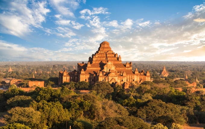 すべての寺院の中で最大のダンマヤン寺院は、バガンの平原にそびえ立ち、ここにある歴史的建造物の中でも最も写真映えするものの 1 つです。寺院自体は、完成前に建設を命じた国王が暗殺されたため完成することはありませんでしたが、それでもここで見つけることができる最も印象的な寺院の 1 つです。