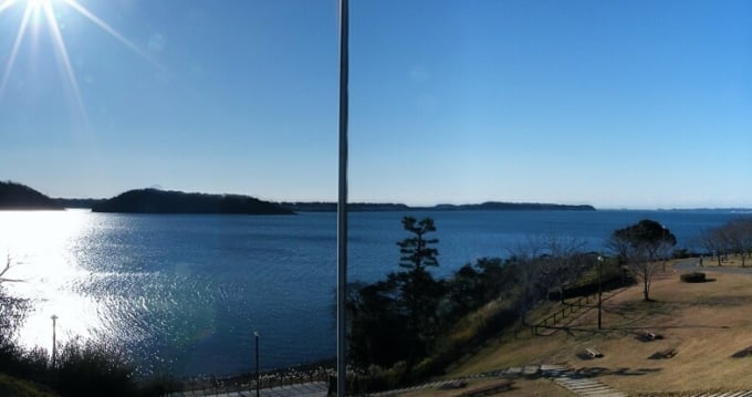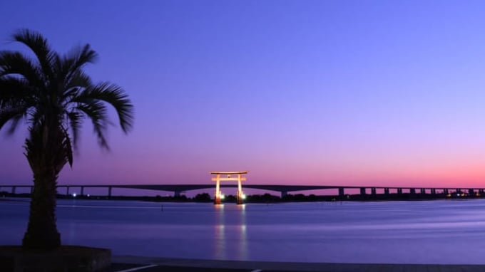 Bentenjima Seaside Parkは、Jr Bentenjima駅のすぐ南にあり、Shinkansenに平行に走っています。青い空と湖の表面の組み合わせ、高さ約18メートルに立っている印象的な赤いトリイの門、背景のハマナバイパスの高層橋は息をのむような景色を眺めることができます。この場所は、その見事な日の出と日没の景色でも有名です。