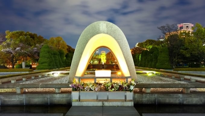 原爆ドームから目と鼻の先にある広島平和記念公園では、優しい光に満ちた夜景が美しく、前へ進む力強さを感じさせます。原爆の悲しみを浮き彫りにし、平和を語るかのような灯りです。広島平和記念資料館で惨状について学んだ後、公園の夜景を見に再訪すると、また違った視点が得られるかもしれません。