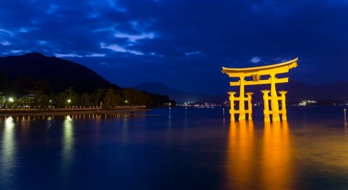 宮島は、大鳥居や厳島神社などの世界遺産で知られる日本を代表する観光地のひとつです。夜になると宮島は、ライトアップされた鳥居が幻想的な夜景スポットに変わり、荘厳な雰囲気を醸し出し、美しい夜景を演出します。