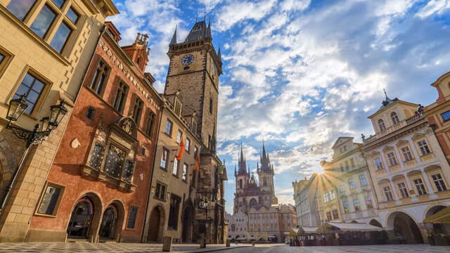 旧市街広場の建物の中で最も有名なのは、旧市庁舎にあるプラハの天文時計です。プラハ オルロイとして知られるこの時計は、1410 年に最初の部品が作られた世界最古の天文時計と言われています。この 600 年前の時計は今でも時を伝えています。毎日同じ時間に、その数字が魅力的なメカニカルなパフォーマンスで動きます。ぜひ実際に見てみてください!