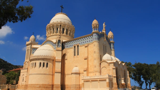 ノートルダムダフリケは、アルジェのバブエルの海を見下ろす地中海沿岸で最も有名な教会の1つです。教会は、1858年から1872年まで、作曲家バフィとラビジェリー枢機inalの後援の下で建築家のフルムホによって建てられました。教会の長さは54メートル、高さは124メートルで、ドームは高さ48メートルです。教会の建築スタイルはビザンチウムにさかのぼり、その装飾はスペインとアラビックのスタイルにさかのぼります。