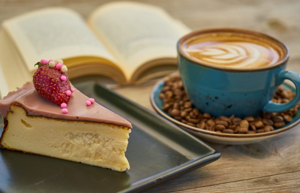 食べ物:ケーキと素晴らしいコーヒーをお楽しみください。