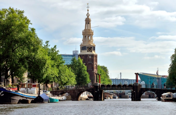 ちりばめられた電球がすべて点灯する夜は特に美しく、趣のあるオランダの運河沿いの家々を背景にしたマヘレの跳ね橋は、間違いなくアムステルダム市内で最もロマンチックなスポットです。現在の橋のスタイルは 1934 年に建設されましたが、その歴史は 17 世紀に遡り、アムステル川を渡るために使用されていました。この名前はオランダ語で「細い橋」を意味しますが、元の橋が非常に狭かったためと思われますが、1871 年に再建された今では橋の幅はさらに広くなりました。