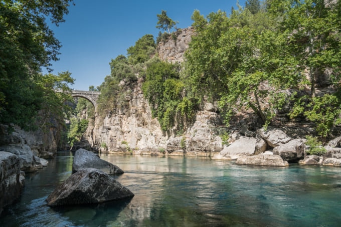 KoprölüKanyonは、Antalyaで最も美しい観光地の1つです。その性質の美しさと、今日でも使用されている古代ローマの橋などの壮大なローマの遺跡で有名です。鹿、クマ、ウサギ、山羊などの多くの野生動物があり、谷には多くのウォータースポーツやキャンプ愛好家が頻繁に訪れています。 KöprülükanyonはManavgatの町にあります。