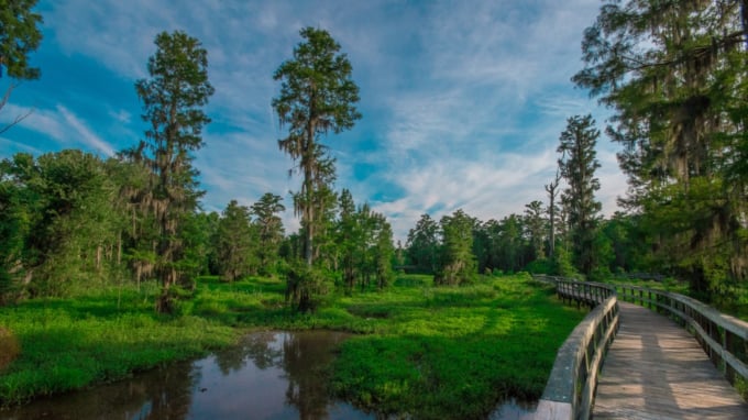この沼地は、オーガスタのダウンタウンからわずか数マイルに位置しています。沼地の周りには、1100エーカーの土地があり、ボードウォーク、リサーチステーション、視聴点、自転車やハイキングコースを備えた自然公園として機能します。ネイチャーパークは、この地域のさまざまな自然の生息地の美しさを楽しむのに最適な場所です。このエリアには、観光客が写真を撮ってワニを探すことができる多様な歌の鳥があります。