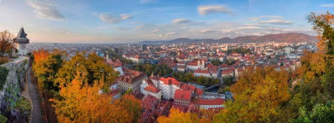 グラーツはオーストリア南東部に位置する都市で、同国有数の都市であり、シュタイアーマルク州の首都となっています。ムール川沿いに広がるこの都市は、文化と教育の中心地でもあり、多くの学生や研究者が住んでいます。グラーツの中心部には数多くの歴史的建造物があり、1999 年にグラーツ歴史地区としてユネスコの世界遺産に登録されました。