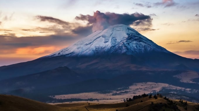 メキシコには、メキシコ独自の象徴的な富士山があります。ポポカテペトルは、メキシコ中央部の周囲の地域にそびえ立つ、同様の形をした円錐形の火山です。ただし、富士とは異なり、ポポカテペトル山の活動は非常に活発で、頂上から噴煙が立ち上るのがよく見られます。危険な性質のため、山への登山は禁止されていますが、この象徴的な山頂をよく見るための美しい場所が数多くあります。そのうちの 1 つは、目の前にあるカラフルな聖母救済教会の素晴らしい景色を眺めることができ、近くのチョルラ市から見ることができます。