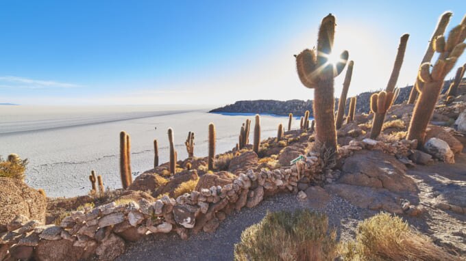 インカワシ島は、ボリビアのウユニ塩湖の真ん中に位置する岩だらけの土地です。かつてボリビアにあった島、インカワシ島の総面積は 61 エーカーです。この地域の化石と藻類で構成される独特のサンゴのような構造。さらに、この島には巨大なサボテンが生息しています。インカワシ島はボリビアの人気観光地です。その名前は、スペイン語で島を意味するislaと、インカの家を意味するIncahuasiに由来しています。
