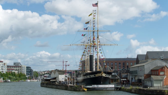 SS グレート ブリテンは鉄製の船体の旅客船としては最大であり、世界初の旅客船です。この船は、1843 年にこの偉大な船が進水したのと同じドックにあり、イザムバード キングダム ブルネルによって設計されました。現在はブリストルのグレート ウェスタン ドックにあり、旅行者や観光客が上部ドックを訪れることができます。豪華なキャビンを覗いてみることもできます。ブルネル研究所やデイビッド マクレガー図書館にも非常に近いです。