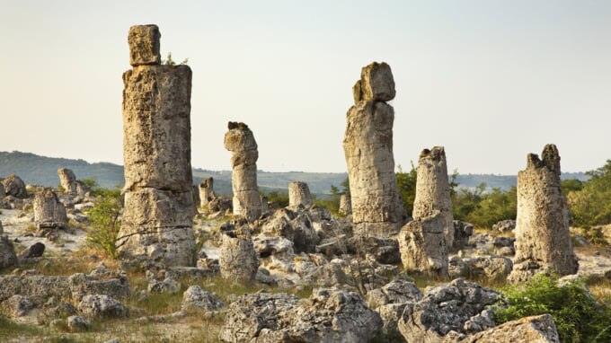 ストーンフォレストは、ブルガリアの自然観光地であり、海の波、雨、風の要因の砂漠のような自然現象の結果として発生しました。石の森はブルガリアで唯一の砂漠であり、砂で満たされた砂丘と自然の中空の岩で作られています。また、石の森は、科学者が中石器時代に人間の生命の証拠を見つけた唯一の場所です。石の柱は積み重ねられているように見えますが(ただし、自然です)、30フィートも高くなります。夏は石の森のピーク観光シーズンですが、正午からは本当に暑くなる可能性があります。したがって、できるだけ早く観光に行くことをお勧めします。