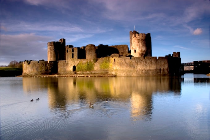 城は水島と堀に囲まれた実に見事な建築物です。城の現代的なデザインは世界中で大きな注目を集めており、毎年何百万人もの観光客が訪れます。ケアフィリー山沿いに位置し、カーディフの豊かな王室の歴史を浮き彫りにしています。この中世の城は、グラモーガンを征服するために 13 世紀にギルバート デ クレアによって建設されました。中世の同心円状の城で、北に湖があり、中島と西島は南湖に守られています。この場所のドローン写真は素晴らしく、カーディフで最高です。