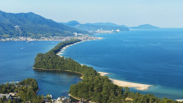アマノハシデートは、松の木で密に覆われた珍しい砂州です。その形状は空を横切って伸びる橋に似ているため、「アマノハシデート」と呼ばれると言われています。日本の3つの風光明媚な景色の1つとして、京都で人気のある目的地です!観察デッキから、訪問者は海、緑、砂浜の海岸の美しいコントラストを楽しむことができます。