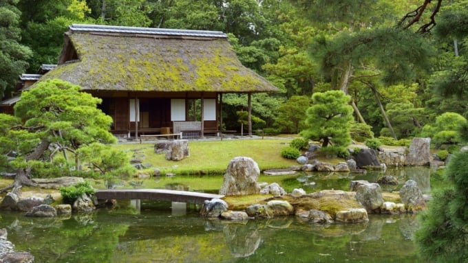 寺院の建築のハイライトの1つは、京都の3つの有名なパビリオン(黄金のパビリオン)とジンカクジ(シルバーパビリオン)と並んで数えられたハインカクパビリオンです。この壮大な構造は、壮大さの感覚を醸し出しています。