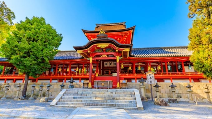 日本の3つの偉大なハチマン神社の1つである田ushimangunangは、「ヤワタノーハチマンサン」として愛情を込めて知られており、不幸を追い払う祝福で有名です。神社の複合施設は2つの地域に分かれています。それは、大川山の頂上にある上部神社と山のふもとにある下の神社です。訪問者は、ケーブルカーまたは徒歩で上部の神社にアクセスできます。