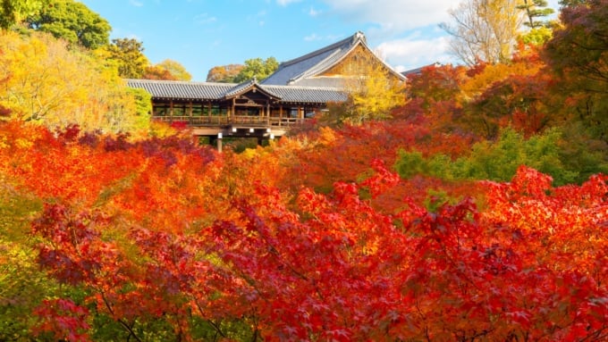 Tofuku-jiは、息をのむような秋の葉で有名で、Tsutenkyo Bridgeからの眺めはテレビ番組で頻繁に取り上げられています。京都の多くの有名な秋の斑点の中でさえ、トゥフクジは鮮やかな色を体験するのに最適な場所の1つとして際立っています。