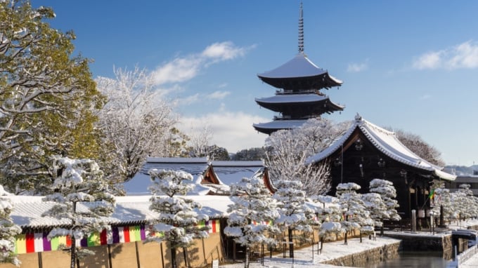 市の象徴的なランドマークである京都塔は、高さ131メートルの高さで、鋼鉄のフレームのない世界で最も高い建物です。観察デッキからは、京都の街並みのユニークな視点を楽しむことができます。 21:00まで営業しているため、街の夜の景色を眺めるのに最適な場所です。