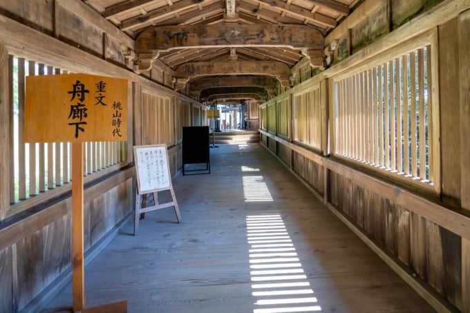 法源寺と都布須麻神社を結ぶ回廊は、豊臣秀吉の時代の宝船「日本丸」の一部を利用して建てられたと伝えられる「舟ギャラリー」と呼ばれる回廊です。